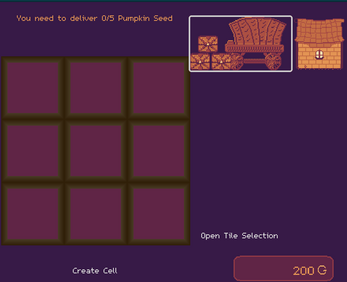 As the seasons change, your crops will grow. You will be able to purchase tiles that will sell your products. With enough hard earned gold, you will be able to buy another farm plot! As you work your way through, you will be able to create custom cells, which captures a snapshot of your current 3x3 grid. With the new captured cell, you will be able to place a Cell of a higher Tier on the grid! This will exponentially continue to increase your abilities to produce raw materials, process materials, and deliver materials!